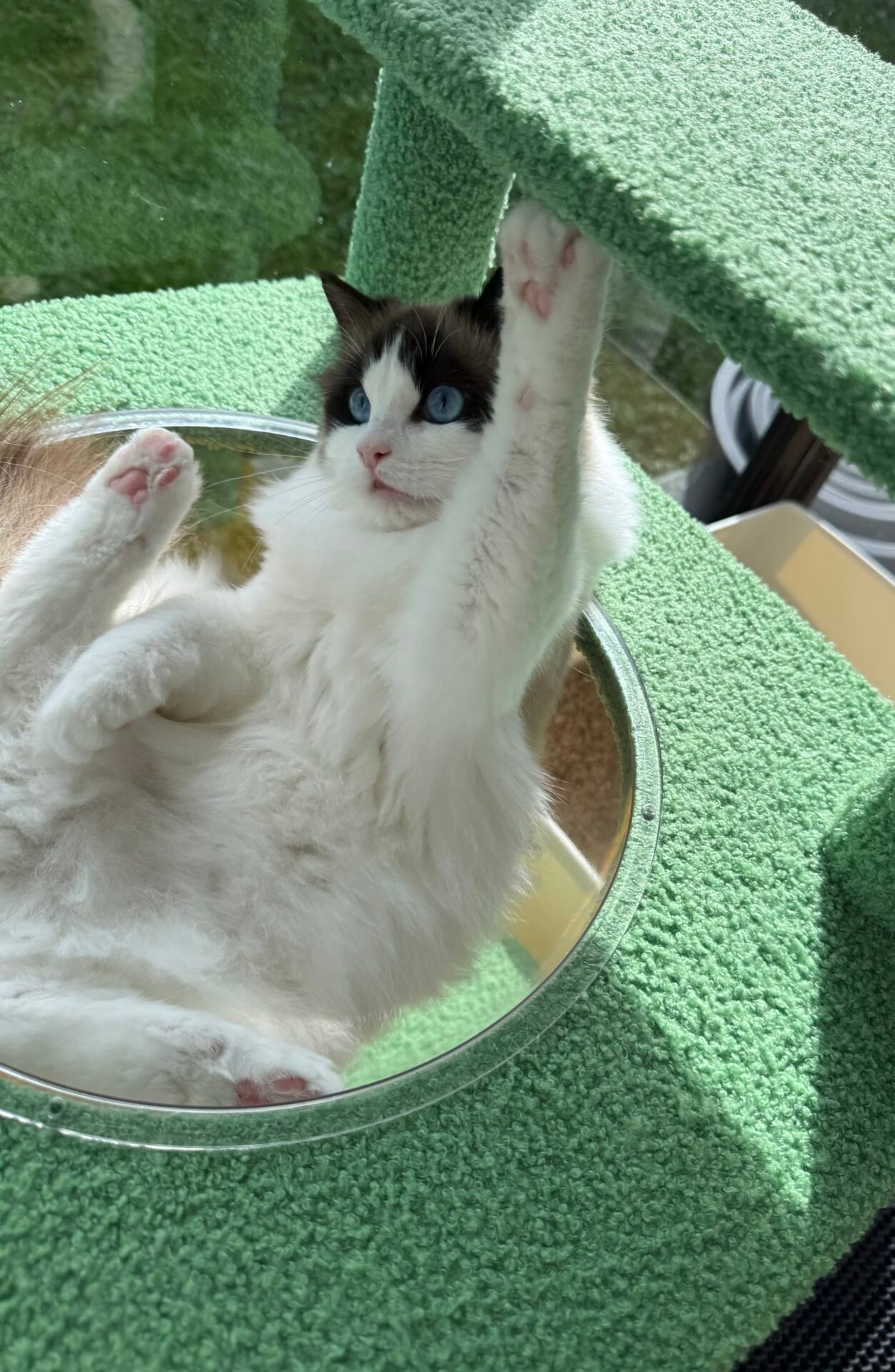 Looking for a new owner who has kind hearted and doesnt mind with the shedding. QQ is a male pure Ragdoll breed with bi-seal colour. He has blue eyes, neutered, he just turned 1 on the 4th of November, he is super sweet as smart, he likes snuggle on your lap and follow wherever you go, and the most important thing is he potty trained. He never pee on our carpet once since we got him. We got him a year ago but because he sheds alot, and that become our main problem so we decided to rehome him. QQ also has heart murmur when we first got him but he has been with us a year now and he is totally healthy and doing fine. If you want to adopt him please make sure you are able to afford him as Ragdoll is high maintenance breed, and since he has been with us we have been feeding him high grade quality food along with pet supplements. If you are interested please
