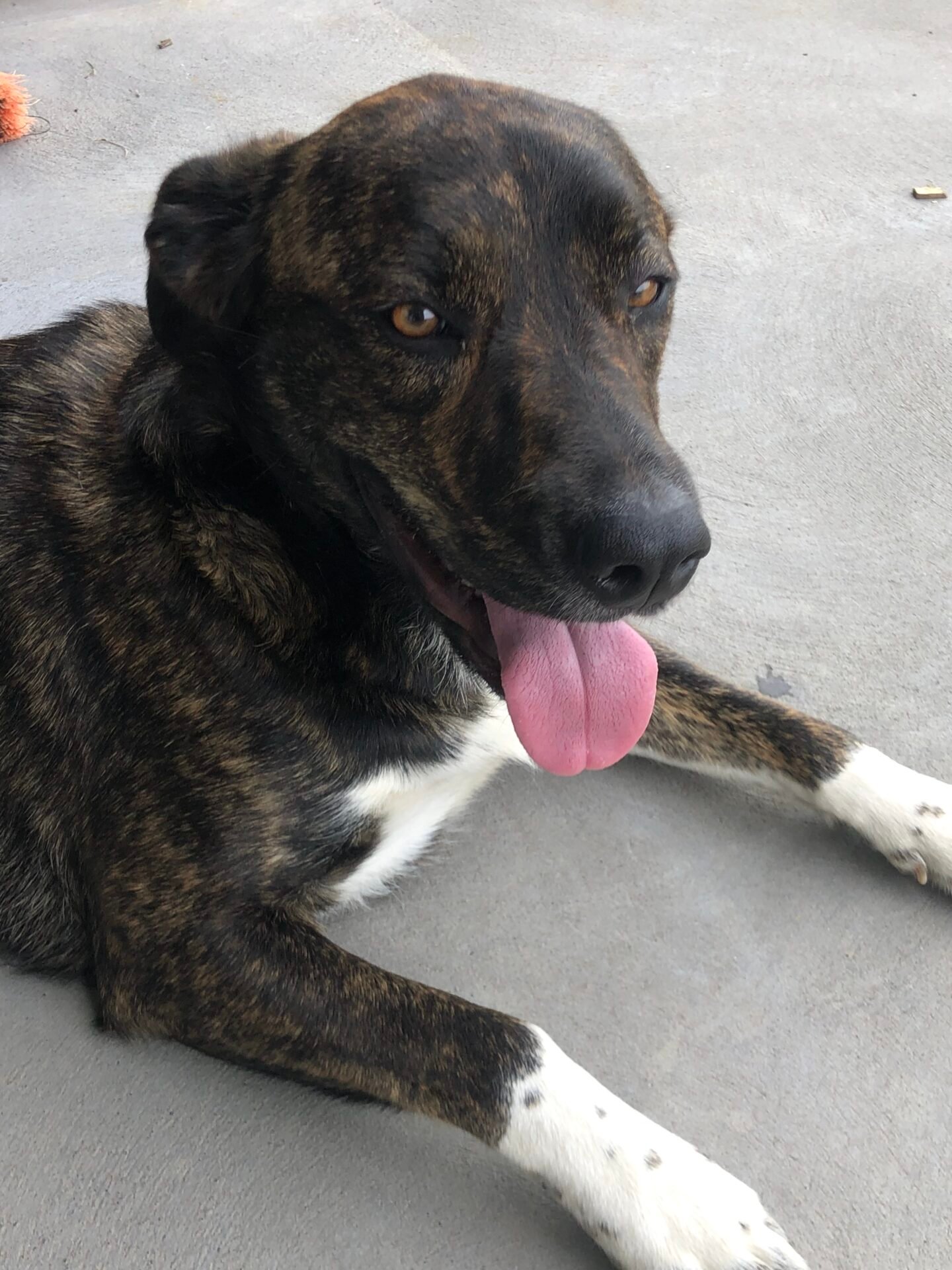 Willa is a lovely natured, energetic fun dog. Willa is a brindle with white feet and is 16 months old. Willa is vaccinated but not yet desexed due to age. The family is moving overseas and unfortunately are unable to take her. Willa is looking for a nurturing and caring home where she will be looked after and walked/run as much as possible.
