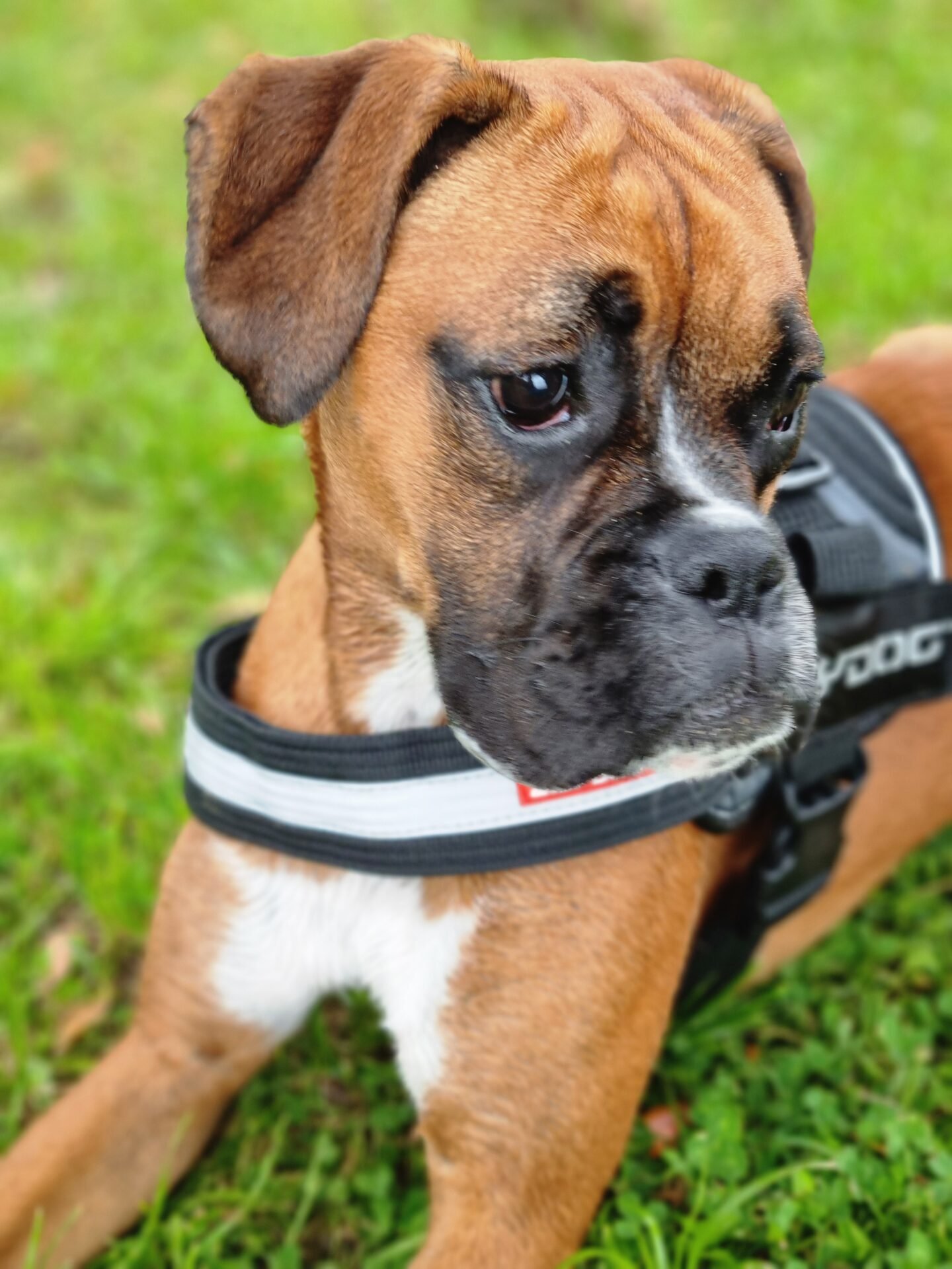 Frankie is a beautiful purebred boxer who is approx 21 months old. She requires more time and energy than we are currently able to afford her. She will make a wonderful family dog.