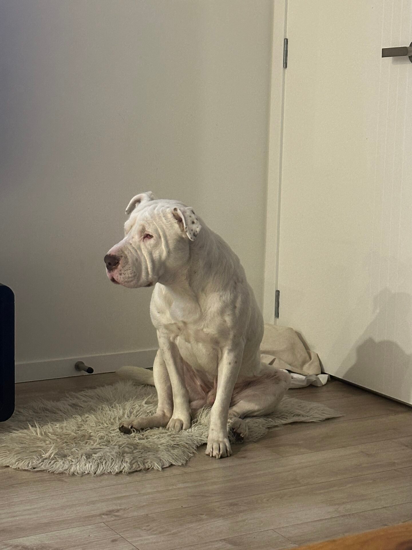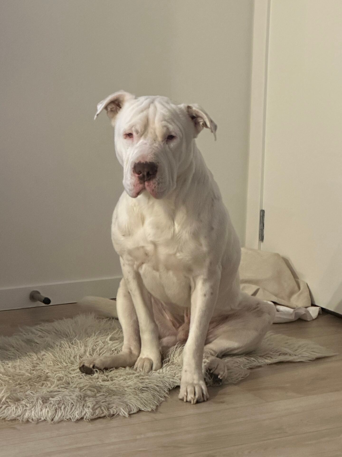 He’s 5 and a half years old, been raised around children. He’s not a big fan of cats.