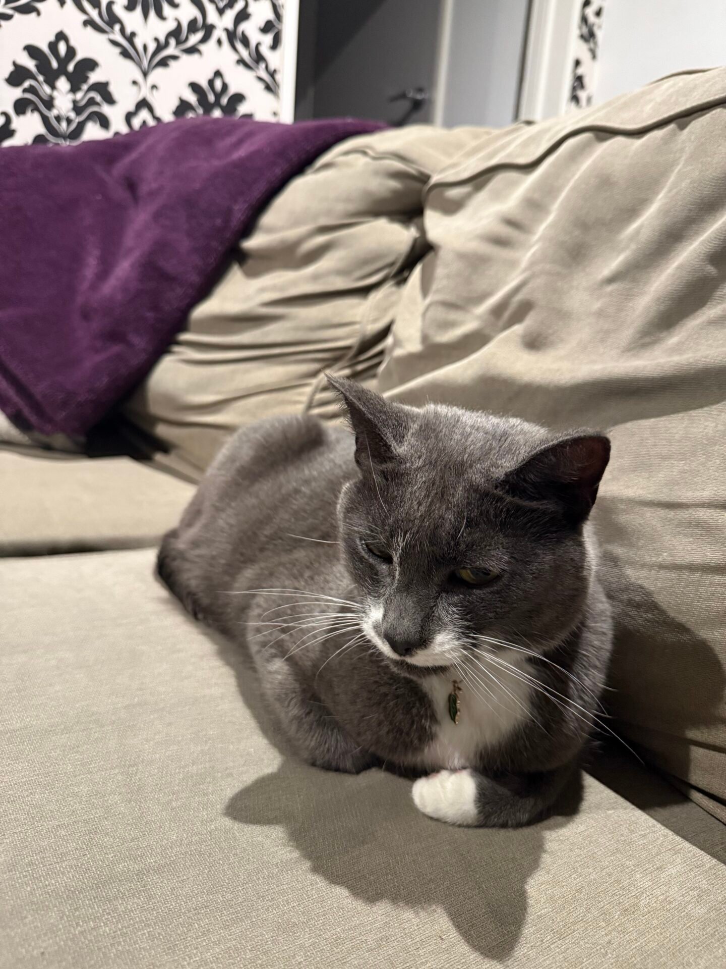 This is Elza, the sweetest little lady you’ll ever meet. We adopted her about 6 months ago from a vet, hoping she’d be a friend to my kitty. Unfortunately that’s not the case. After being pressured to try to keep socialising them from multiple sources, we’ve painfully made the decision to rehome her. She deserves a home where she’s not terrorised or terrorising constantly. She’s eight years old, but definitely still acts like a spring chicken. She’s microchipped, vaccinated and recently treated for fleas and worms. She’ll come with a LOT of accessories as we love her very much and are devastated to be making this decision.