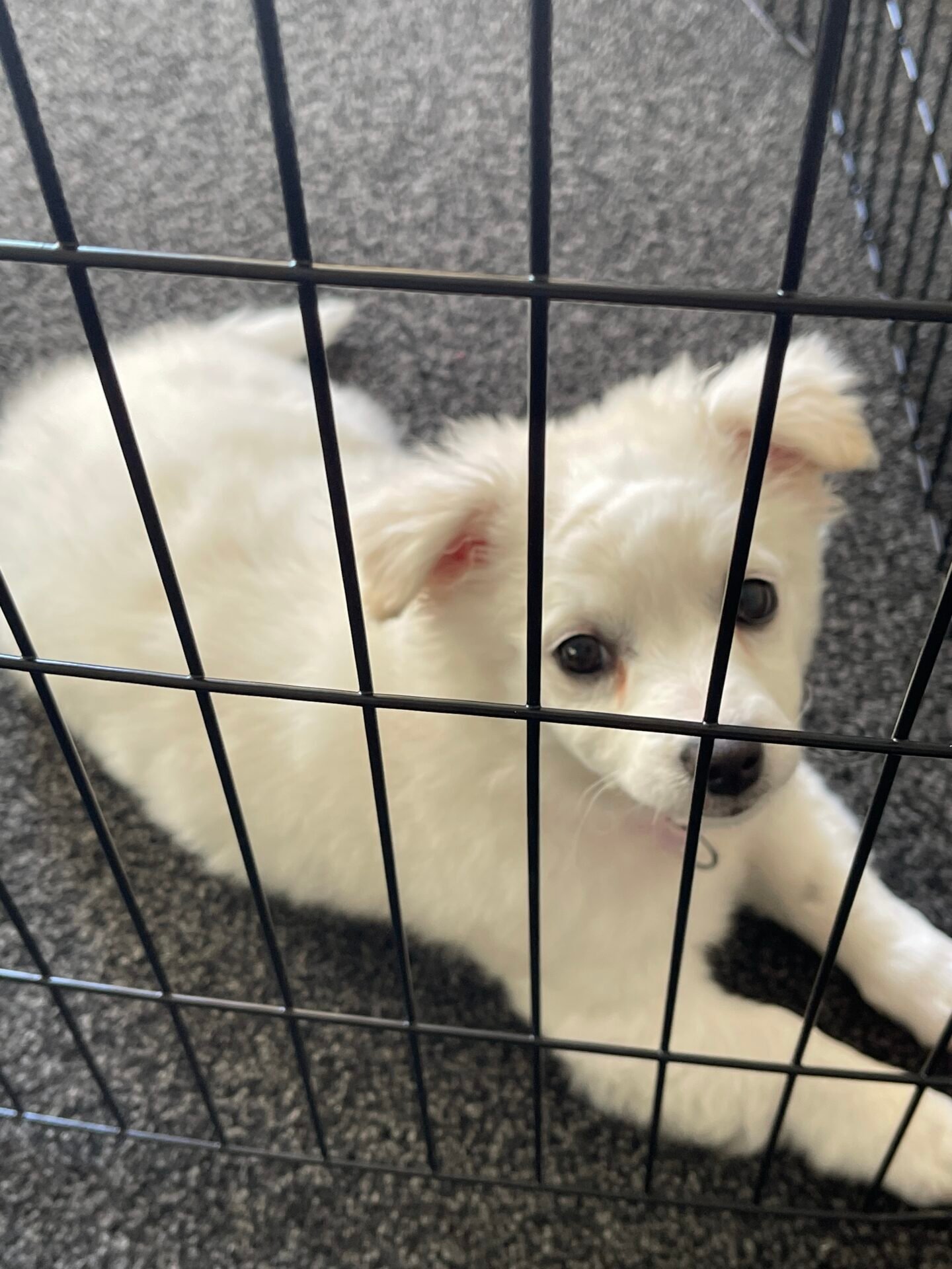 She will come with everything we purchased for her:• Crate• Playpen• Grass potty mat• Food & treats• Collar & leash• Toys and other essentials • Small foldable pet carrier • water resistant large cover and couch cover