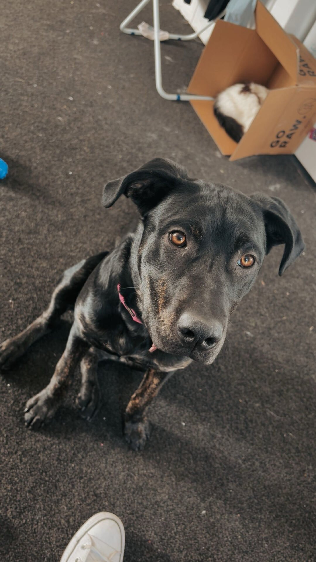Muffin is a sweet, loving girl who’s ready to find her forever home which unfortunately is not with us due to the extreme lack of time I am able to give her, being a high-risk pregnancy, type 1 diabetic, raising my 5 year old solo and our 3 cats. She is fine with cats in her nature but tends to chase them as she just wants to play & as we have an older cat we have had for 5 years now, it’s becoming an issue.