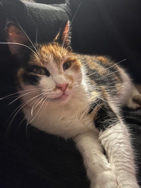 Squeaky (name this because she does not meow, rather squeaks, too cute) – my sweet little street child. I found her at a dairy and after weeks of hunting for her owners, adopted her myself. She is a calico, quite small frame and purrs like a tractor. She can’t wait to greet you when she walks in the door, can’t wait to be touched so jumps up to meet your hand. She sleeps at the foot of your bed and waits patiently for morning to be fed. She doesn’t mind running around in the rain and often comes in demanding to be dried. She is very gentle, but needs to have someone who can respect her limits. I’m not sure that she would be suited to young children. She is 6 or 7 years old. Desexed and microchip.