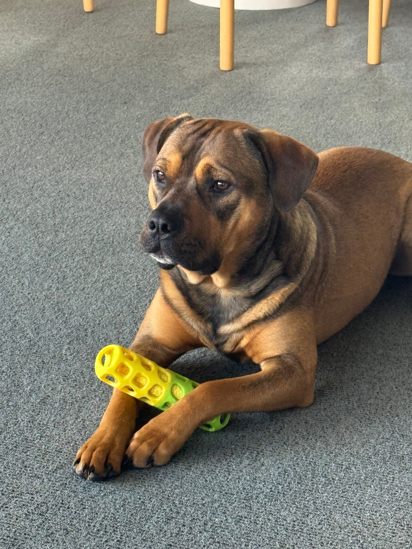 Full of energy, he loves to be cared for with lots of attention and pats, enjoys kids and being outdoors but loves to be indoors at night with family.