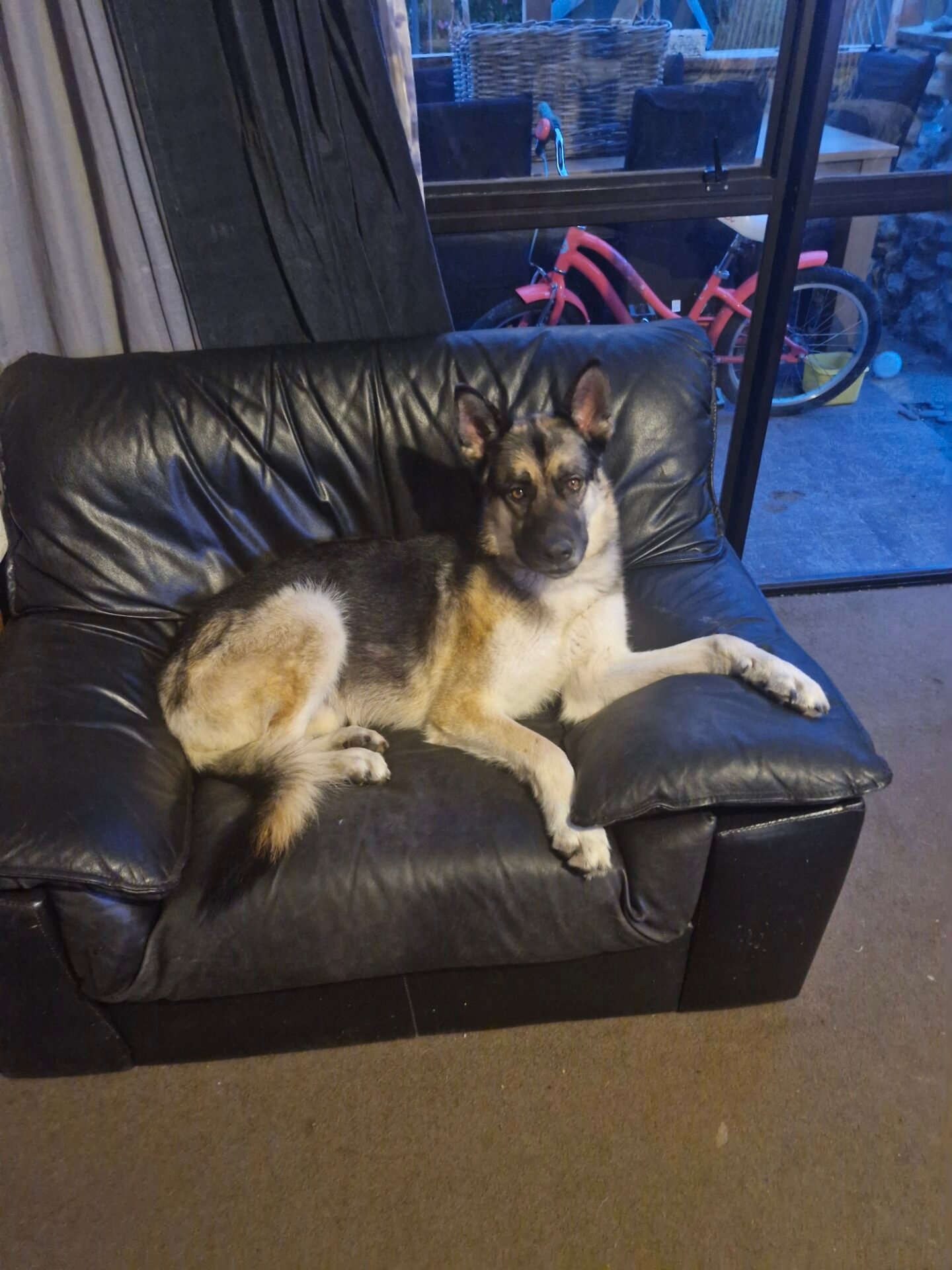 We’ve had Radar since September from my nephew who moved overseas. Unfortunately he doesn’t fit with our family lifestyle. He needs someone with time to train him, who has time to exercise him and with a love for big dogs. He is such a sweetie but requires training. He is very protective over his food and could bite if you go near him while around food. Radar is very intelligent, very good looking, high energy and loves company and scratches! He gets on amazing with our Labrador. He comes with an e-collar but we haven’t used it as we just don’t have the time for training. He would suit an active person who loves the outdoors!