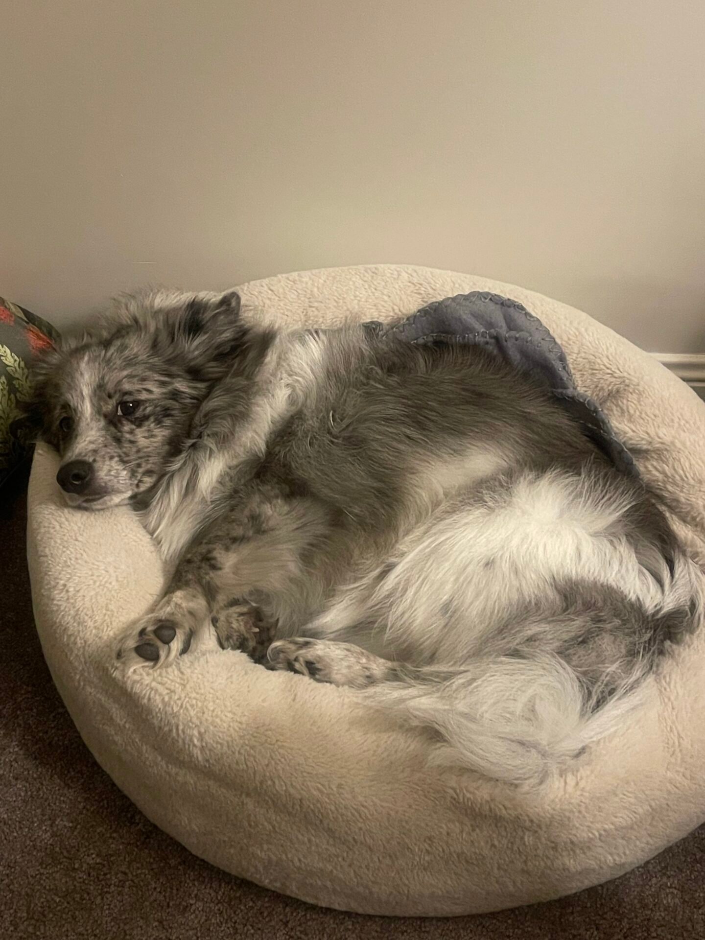 She’s a bit of a sleepy soul at home, but don’t let that fool you — she lights up for a run at the park, a swim, or a simple walk around the block. She loves adventure just as much as she loves curling up for a nap.