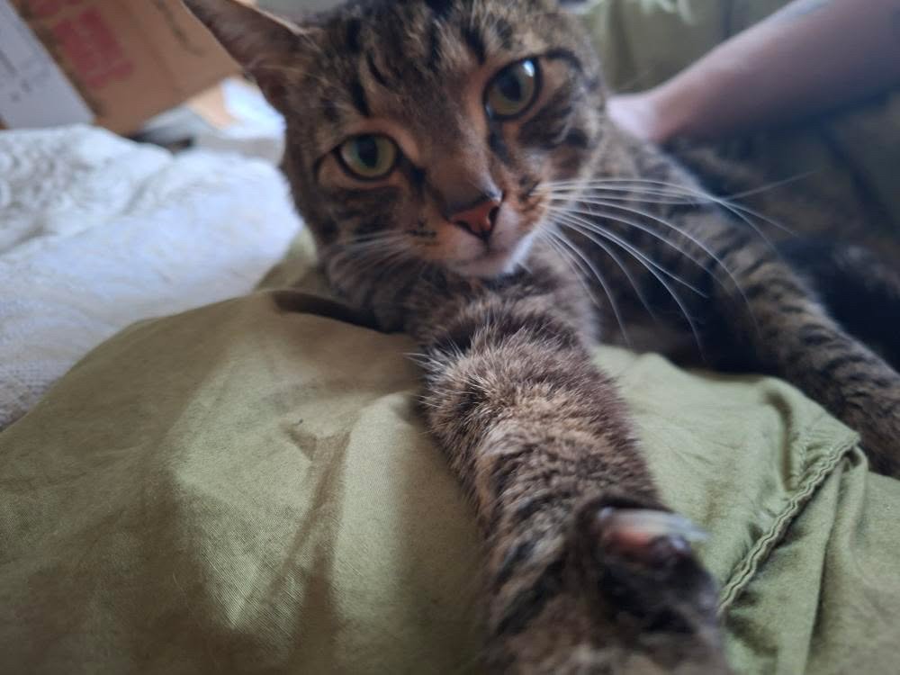 This is Stevie, he’s a 3-year-old tabby cat with a heart of gold! We recently adopted him after our friend moved to a home that didn’t allow pets, though we’ve only been able to provide temporary housing and need to find him a permanent home ASAP. He’s so lovely, we would have loved to find a temporary place for him to stay while we sorted a way to adopt him fully, but unfortunately with time constraints we need to rehome.